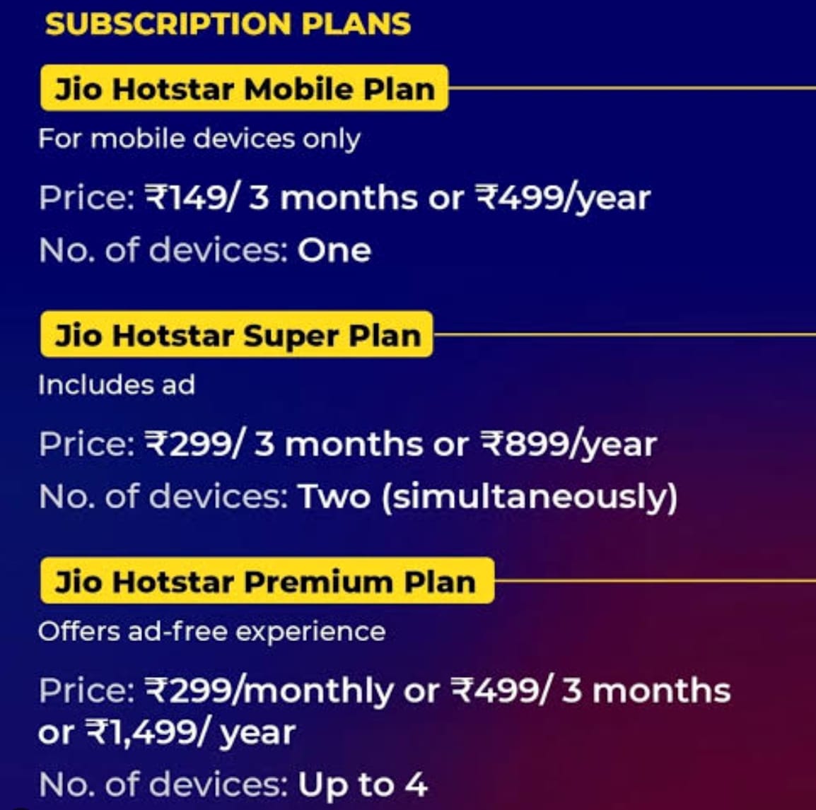 - JioCinema के प्लान्स: